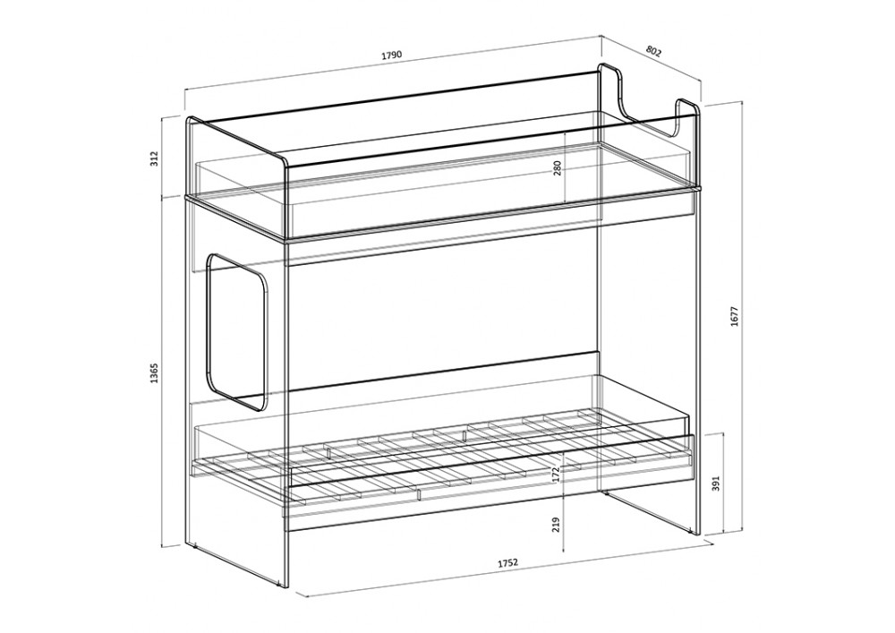 Классическая детская двухъярусная кровать с двумя параллельными спальными местами размером 1900х750 или 1750х750.